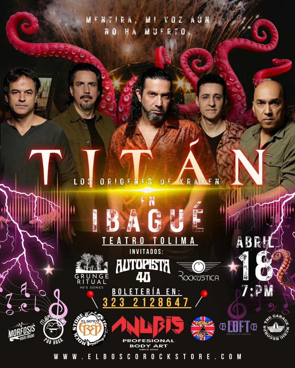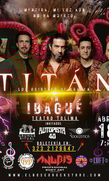 Nuestros tres artistas en el Teatro Tolima, 18 de Abril, TITAN, ROCKUSTICA Y AUTOPISTA 40.